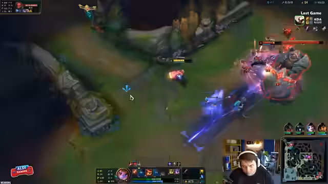 05:41:55Das Gameplay ist geprägt von intensiven Kampfphasen und taktischen Manövern. Der Streamer beobachtet, wie ein gegnerischer Spieler, der 'hinter im Busch' war, überraschend agiert und einen unerwarteten Schaden verursacht, was Verwirrung hervorruft. Eine Sequenz wird als 'geil' und 'insane' beschrieben, bei der der Ball hochgeworfen wurde und eine Ulti eingesetzt wurde. Einen Höhepunkt bildet ein 'broken' Play mit einem Garen, der eine 'große Reise' um die Map unternimmt und anschließend besiegt wird. Bewegungsabläufe und Fähigkeitskombinationen werden von den Spielern detailliert analysiert und bewundert.