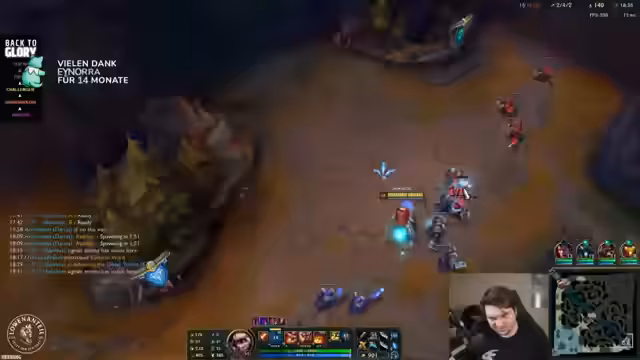 07:17:39Der aktuelle Draft hat ein Problem mit der Frontline, aber es wird vorgeschlagen, einen Kindle-Gem-Stack-Zileon zu spielen. Die Funktionsweise dieses Builds wird erklärt: Man benötigt Träne und viermal Kindle-Gem. Elky bemerkt ironisch, dass er die Träne im Inventar nicht gekauft, sondern geweint hat. Es folgt ein Hinweis auf Diana und die Aufforderung an Elky, Twitter zu checken. Jemand aus dem Chat könnte bei technischen Problemen helfen, insbesondere wenn er die Perspektive des Streamers sehen könnte. Es wird das Problem angesprochen, dass Elky aus seinem eigenen Bildschirm tappt. Als Alternative wird Lock-Camp-Spielen vorgeschlagen, was jedoch ungewohnt ist. Talondon Farm, ein ehemaliger Challenger mit Locked Game als Talon, wird erwähnt, wobei angemerkt wird, dass er während des Streamens oft angetrunken ist und möglicherweise Alkoholprobleme hat.