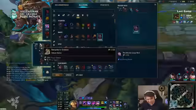02:04:27Im späteren Spielverlauf wird analysiert, wie das eigene Team versucht, das Spiel zu drehen, aber Schwächen in der Teamkommunikation und der Mechanik zeigt. Der Streamer diskutiert Item-Builds, insbesondere die Wahl zwischen Ludens und Port für Shadowflame, und stellt fest, dass die Gegner outscaled werden. Es folgt eine Analyse der gegnerischen Picks, insbesondere der Vayne, die sich stark zeigt. Der Streamer kritisiert den eigenen Top-Laner für seine fehlende Kontrolle und die daraus resultierenden Spielentscheidungen.