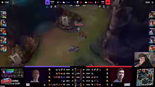 06:36:54Der Streamer wechselt zum Kommentieren eines professionellen NLC-Spiels. Nord spielt gegen DMG in einer wichtigen Partie um die Playoff-Platzierung. Er kritisiert den Draft von Nord, insbesondere das matchup-schwere Renekton gegen Ambessa auf der Top-Lane. Er lobt jedoch die Spielweise des Teams, die er als kreativ und über das Limit gehend beschreibt, und hebt besonders die starke Leistung von Spyro hervor. Trotz eines Early-Goldvorteils von DMG sieht Nord aufgrund seiner Championspotenziale gute Chancen im späteren Spielverlauf.