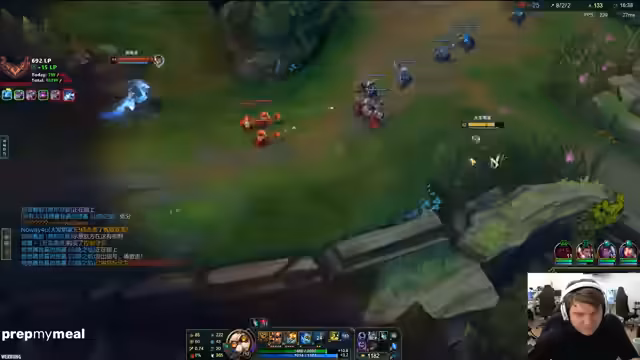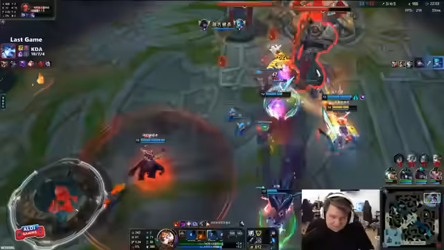 01:50:02Ein weiteres Game zeigt erneut die hohe Qualität der Gegner auf dem Server. Der Streamer muss gegen einen Challenger-Ryze-OTP antreten, der sauber lasthittet und keinen Druck abbekommt. Seine Analyse der Gegner offenbart eine hohe Anzahl an Smurf- und Challenger-Accounts mit beeindruckenden Win-Raten, was den Server zwar anspruchsvoll, aber auch schwer zu navigieren macht.