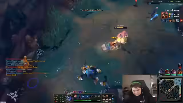 06:50:10Der Streamer kommentiert lautes Spielgeschehen und wundert sich über ungeschickte Gegner-Entscheidungen, wie das Fehlen von Flash oder den Einsatz von Face Rush. Während des Spiels entwickelt sich seine Lane jedoch negativ, was zu einer verzweifelten Situation führt. Seine Botlane steht früh schonungslos zurück und er kann seinen Lead nicht effektiv nutzen, um das Spiel zu drehen, was ihn sehr frustriert.