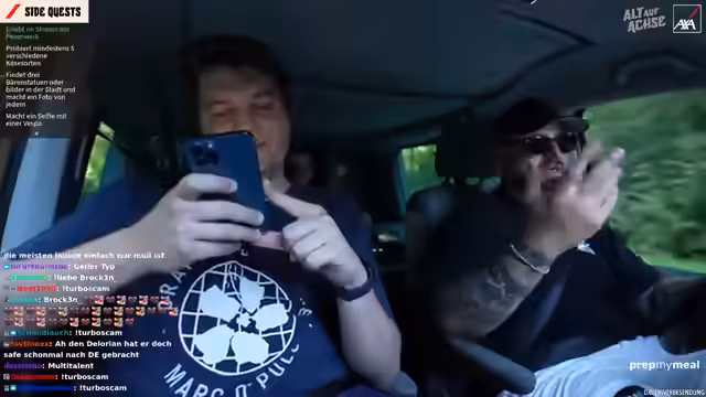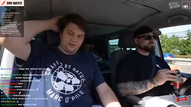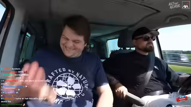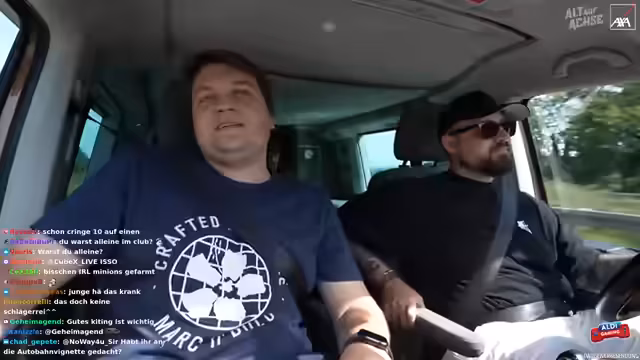 02:14:04Die Gruppe beobachtet einen gefährlichen Autofahrer, der auf der Autobahn unsicher fährt und möglicherweise am Handy tippt. Sie diskutieren, ob sie die Polizei rufen sollen und wie sie sich verhalten sollen, um nicht in Gefahr zu geraten. Frederik soll die mahnende Hand erheben. Die Gruppe überholt den gefährlichen Fahrer, der sich kurz darauf wieder vor sie setzt. Es wird über das Schreiben eines Testaments gesprochen, da die Situation als potenziell lebensbedrohlich wahrgenommen wird. Der Streamer legt fest, dass sein WoW-Account an Vanessa gehen soll und schätzt dessen Wert auf mehrere tausend Euro. Es wird über seltene Mounts in World of Warcraft diskutiert, insbesondere den zyrianischen Tiger, und wie viel Gold dieser wert ist. Frederik soll für ein Wochenende mit WoW begeistert werden. Die Gruppe scherzt darüber, wie viel Echtgeld man für virtuelles Gold ausgeben müsste.