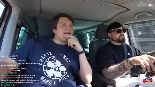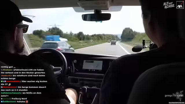 02:43:51Es wird ein Aufruf gestartet, dass der Chat einen Plus in den Chat machen soll, wer sich Merch gekauft hat. Es wird über eine Vignette für die Schweiz gesprochen und dass sie diese noch anbringen müssen. Es wird diskutiert, wo die Vignette angebracht werden muss. Es wird ein kurzer Call gemacht, dass sie sich in Richtung Grenze zur Schweiz und Österreich befinden. Es wird betont, wie schön es ist, mit dem Auto durch diese Länder zu fahren und dass die Zuschauer alles mitverfolgen können. Es wird überlegt, ob die E-Vignetten-Ding oben mit drauf muss. Es wird ein kurzer Call gemacht, dass sie nicht wissen, wie sich die SIM-Karten verhalten werden, wenn sie über die Grenze fahren. Es kann sein, dass sie den Router neu starten müssen. Es wird über Starlink gesprochen, das aber keine sichere Alternative ist.