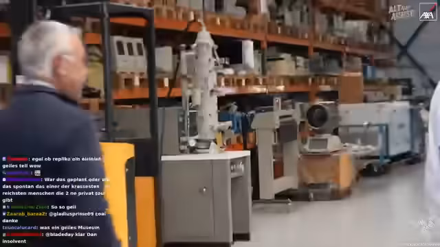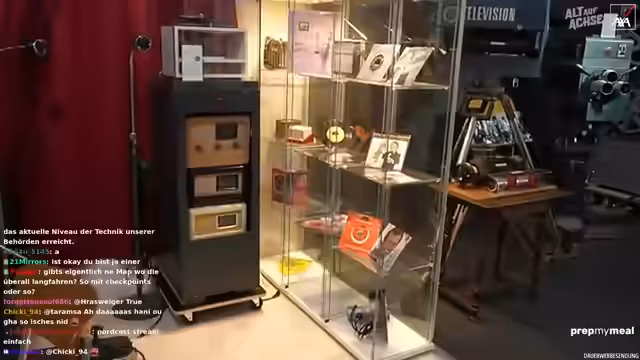 04:52:13Die Gruppe plant eine systematische Erkundung des Museums, beginnend mit dem Technikteil. Es wird die Möglichkeit von WLAN im Inneren geprüft, da es außerhalb des Gebäudes Verbindungsprobleme gibt. Trotz der Herausforderungen durch die dicken Stahlbetonwände des Museums, die den Empfang stören, wird versucht, das Beste aus der Situation zu machen. Es wird überlegt, wie man den Chat dennoch am Erlebnis teilhaben lassen kann, beispielsweise durch Fotos. Die Gruppe nimmt die technischen Schwierigkeiten mit Humor und betont, dass Pannen Teil des Livestream-Contents sind. Es wird die Idee diskutiert, Starlink zu nutzen, um das Problem zu beheben, aber die Durchdringung von Stahlbeton erweist sich als Hindernis. Es wird ein T-Shirt verlost, um die Zeit zu überbrücken und die Zuschauer bei Laune zu halten.