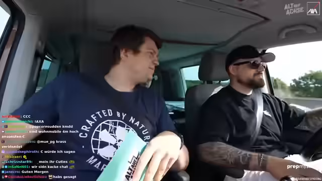01:59:38Es wird über Schuhgrößen diskutiert, wobei die Standardgrößen für Männer und Frauen in Deutschland thematisiert werden. Der Streamer gibt seine Schuhgröße von 47 an. Es wird über frühere TV-Auftritte gesprochen, darunter ein Auftritt in der TV-Total-TV-Box, wo er seine Fähigkeit, mit den Daumen zu wackeln, präsentierte. Ein anderer Teilnehmer erzählt von einem Auftritt in der Show 'Mein Mann kann'. Die Gruppe scherzt darüber, dass einer der Teilnehmer alles wie ein Broder sieht, wie Lego. Es wird humorvoll angedeutet, dass über sexuelle Praktiken gesprochen werden sollte, aber eine ältere Dame in der Nähe dies verhindert. Die Gruppe wird aufgefordert, ihre Sachen wegzuräumen, da sie bald losfahren müssen. Ein Teilnehmer fragt, ob er ein bestimmtes Produkt mitnehmen soll, was verneint wird.