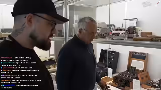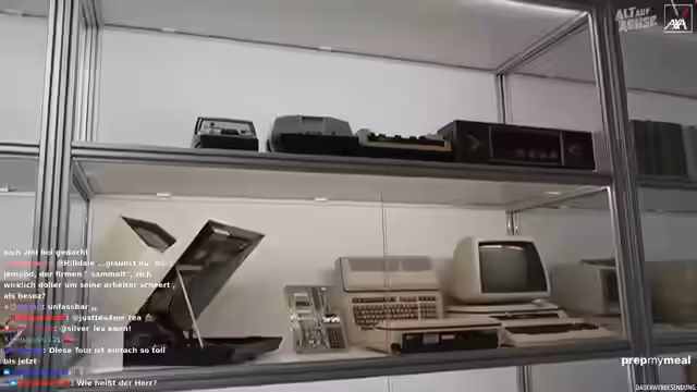 05:38:54Der Streamer und sein Begleiter besichtigen eine Sammlung alter Computer, darunter ein IT-Excorer mit einem nachgebildeten 16-Bit-Betriebssystem und alte Macs. Sie zeigen elektronische Zeichengeräte aus der Frühzeit des Computers, die damals etwa 100.000 Franken kosteten. Ein Highlight ist das "Viren-Gefängnis", das den ersten Computer-Virus enthält. Sie experimentieren mit einer Maschine, die es erlaubt, kurze Sätze zu schreiben, wobei jeder Buchstabe einen Cooldown hat. Es werden alte iPhones und die Garage der Familie Jobs gezeigt, wo der Apple I gelötet wurde. Ein originales Apple I wird präsentiert, dessen Wert heute bei etwa einer Million Dollar liegt. Die Führung wird von einem privaten Sammler gegeben, der die Geräte auf Flohmärkten und anderswo erworben hat. Die Sammlung umfasst auch frühe Computermodelle für Schulen und futuristisch anmutende Geräte mit Tragegriffen für LAN-Partys.
