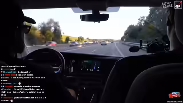 Im [game] Just Chatting wurde der Merch-Shop-Start angekündigt und die Route nach Solotouren zum Technik- und Retro-Gaming-Museum geplant. Diskussionen über Verschwörungstheorien und Dialekte kamen auf. Ein Fan wurde auf der Autobahn gesichtet, was zu einem Sicherheitsappell führte. Ein Quiz mit AXA als Sponsor wurde veranstaltet und Fragen zu Fahrsicherheit und Italien behandelt.
