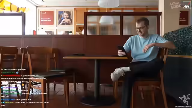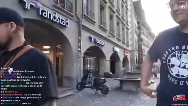 08:43:30Während eines Regiegesprächs äußert der Streamer seine anfängliche Angst vor der Tour und betont, dass sie immer besser wird. Er berichtet von seinen bisherigen Erfahrungen in Bern, darunter ein erfolgreiches E-Sport-Event und ein Bootcamp. Es wird darauf geachtet, keine Personen ohne deren Einverständnis zu filmen. Die Gruppe wird auf die Besorgnis der Leute aufmerksam gemacht, gefilmt zu werden, und beschließt, respektvoll zu sein. Es wird überlegt, den Rucksack nicht unbeaufsichtigt zu lassen, um Diebstahl zu verhindern. Die Gruppe diskutiert über den Plan, ein Restaurant zu besuchen, in dem sie Käsefondue essen wollen. Es wird über die Drogenproblematik in Bern gescherzt und eine Reportage des Schweizer Rundfunks über das Drogenproblem angekündigt.