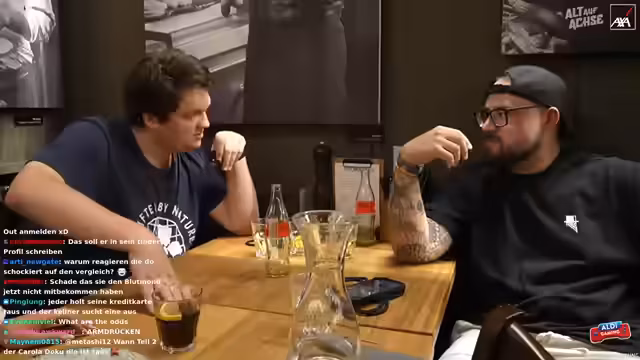 01:36:12Es wird darüber gesprochen, dass Frederik Alkohol wie Wasser trinkt und ein Alkoholproblem hat. Die Gruppe erinnert sich an eine Party, auf der sie Bier-Pingpong mit Wodka spielten und Kani von mehreren Frauen umgeben war. Es wird erzählt, wie der Streamer versuchte, Kani eine Freundin zu suchen, aber dabei unbeabsichtigt zwei Frauen vergraulte. Die Gruppe versucht, die Erlaubnis zum Filmen in einem Lokal zu bekommen. Sie einigen sich darauf, dass sie die Erlaubnis zum Filmen haben, solange sie keine explizite Ablehnung erhalten. Die Gruppe reflektiert über die anstrengende Parksituation in Heidelberg und die Schwierigkeiten, einen Parkplatz zu finden. Trotz der Schwierigkeiten war alles in Ordnung. Der Streamer erwähnt, dass er und Metashi getrennte Chats haben und dass er die Noe mag.