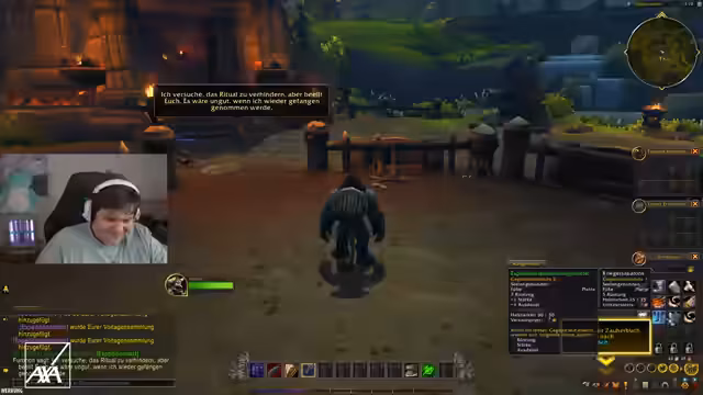 01:20:13Der Streamer erinnert an gefährliche Momente auf dem Weg, wie den Kampf gegen einen Feuer-Elementar oder den Angreifer in South Shore, der sie an den Rand der Vernichtung brachte. Ein besonderer Moment war der Erhalt der Wirbelaxt, ein erster guter Drop, der ein großartiges Gefühl vermittelte. Die Upgrades in World of Warcraft werden hier als sehr wertig empfunden, da man den Fortschritt am eigenen Charakter spürt.