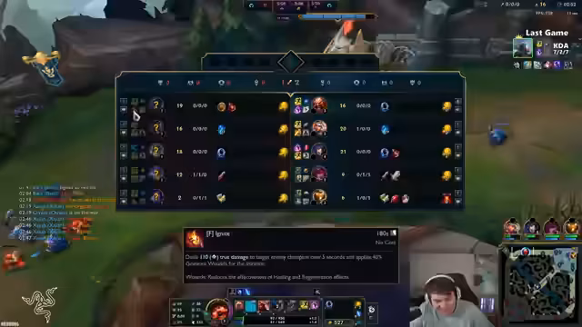 04:58:18Ein Mitspieler wünscht dem Streamer Krebs, was zu einem Diskussion über Toxizität im Chat führt. Der Streamer ist der Ansicht, dass Intentional Feeding das eigentliche Problem sei, da es das Spiel ruinieren könne, während Beleidigungen im High-Elo-Umfeld toleriert würden. Er berichtet, dass sein Top-Laner seine Lane heruntergelaufen ist, ihm Minions geklaut und ihn getrollt hat, was zum Verlust der Top-Lane beigetragen hat.