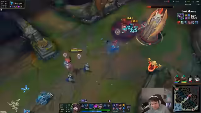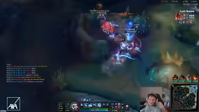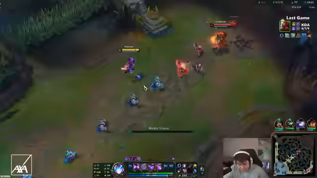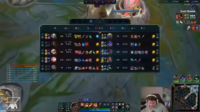 06:40:25Mit einem starken Anivia steht der Streamer im Late-Game, sein Team ist jedoch bereits weit hinter. Er muss nun das gesamte Spiel tragen, während der gegnerische Jax ungestraft farmt. Er bittet sein Team, sich zusammenzuraufen, aber stattdessen wird die Bot-Lane passiv und lässt sich eliminieren. Der Streamer konstatiert, dass das Spielen mit seinen aktuellen Mitspielern sehr anstrengend ist und oft zu unfairen Matchups führt.
