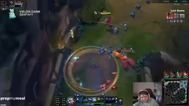 03:39:47Nach dem WoW-Teil wechselt der Stream zu League of Legends, wo er sich in der Top 100 von Europa befindet. Das aktuelle Meta-Gespricht dreht sich um den Champion Nunu, der als 'broken' und sehr leicht für den Elo-Aufstieg gilt, aber bald nerft wird. Der Streamer kritisiert die hohe Toxicity im Spiel, auch in den höchsten Ligen, wo er sich von anderen Spielern beleidigen und trollen lässt. Er führt ein knappes Game, das er trotz eines Todes für sein Team gewinnen kann.