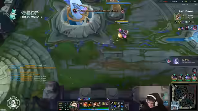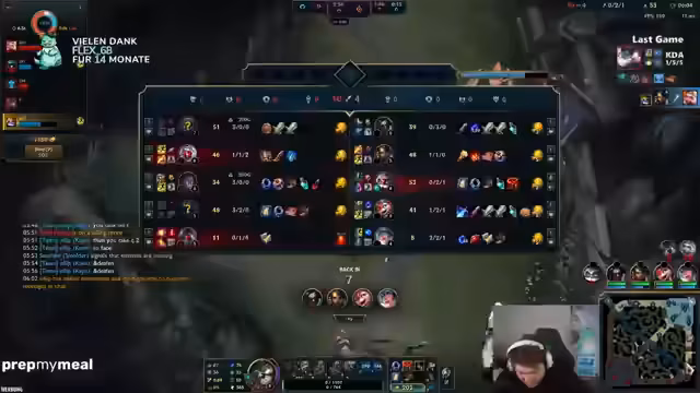 04:45:49Zurück im League of Legends-Spiel, fühlt sich der Streamer frustriert über die aktuelle Meta in der Midlane. Er erklärt, dass fast nur "krebsige" Champions gespielt werden, die ihm ein sehr schweres Early Game bescheren. Als Streamer in der Challenger-Elo macht ihm zusätzlich das Ghosting und Snipen durch Zuschauer zu schaffen, da er gegen mehr Leute auf einem niedrigeren Spielniveau antritt als Top-Spieler, die von weniger Zuschauern beobachtet werden. Dies schafft einen zusätzlichen psychischen Druck, den er bei anderen nicht sieht.