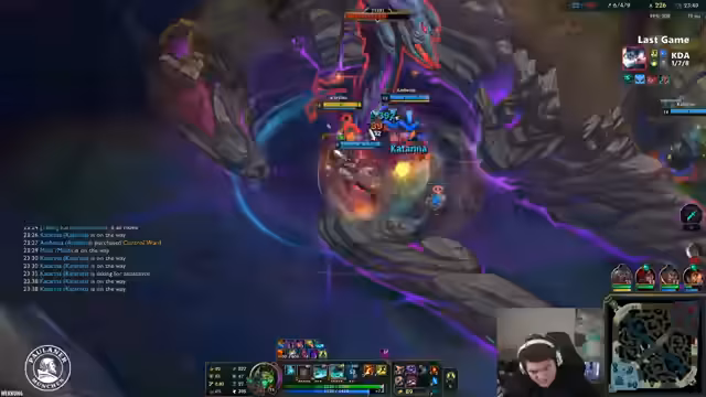 02:09:12Der Streamer zeigt sich frustriert über den Verlauf des Spiels. Er beklagt, dass das Team permanent Objektive wie den Nashor und den Drake verliert und dass die Botlane sich permanent catchen lässt, was das Game unplayable macht. Er versucht, sein Team zu koordinieren, um Objektive zu sichern, ist jedoch mit seiner starken Katharina zwar im Teamfight, kann aber das Blatt nicht wenden.