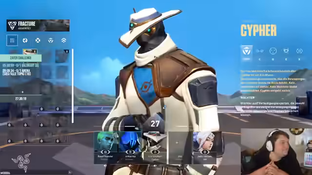 03:51:40Der Stream beginnt mit der Verabschiedung von Parzi nach einer starken Runde. Der Streamer äußert den Wunsch, dass Parzi sich in den nächsten Tagen oder Wochen wieder einschalten möge. Anschließend wechselt der Fokus zurück zu Valorant, wo der Cypher im Mittelpunkt steht. Es gibt Versuche, Repo auf Level 10 zu bringen, und Diskussionen über verschiedene Spielstrategien. Der Streamer scheint motiviert, weiterzuspielen und zeigt Interesse an verschiedenen Spielmechaniken.