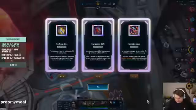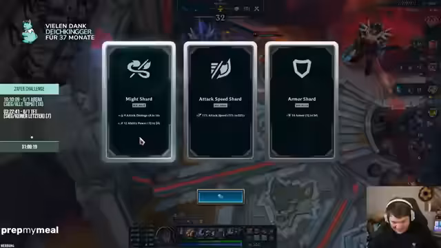 03:17:26Der Streamer analysiert verschiedene Champions wie Trundle und Elise für die Arena-Runde. Er diskutiert die Wirksamkeit von Items wie Hextech Gunblade und Spirit Visage. Dabei geht es um die Balance zwischen Schaden und Verteidigung. Der Streamer betont, dass die Wahl der richtigen Items entscheidend ist, um in den Arenas erfolgreich zu sein, besonders wenn die gegnerischen Teams stark sind.