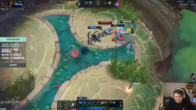 08:57:33Der Streamer befindet sich im 20. Versuch der Arena-Challenge und äußern sich frustriert über die wiederholten Misserfolge. Sie diskutieren die Schwierigkeiten der Challenge, insbesondere dass es einfacher wäre, mit weniger Spielern zu spielen, und vermeiden interne Konflikte. Ein unglücklicher Zufall (RNG) hat verhindert, dass sie früher abschließen konnten, was ihre Motivation beeinträchtigt.