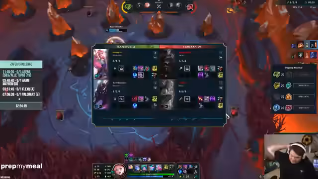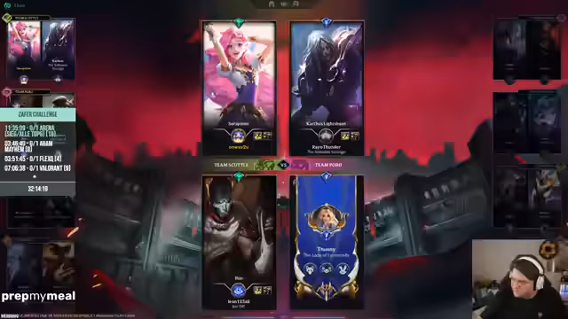 10:02:17Der Streamer und sein Team versuchen, eine optimale Teamzusammensetzung für die Arena-Challenge zu finden, wobei sie betonen, dass sie eine bessere Win-Rate haben, wenn sie mit dem 'Boss' (Kroko) spielen. Sie diskutieren verschiedene Champion-Kombinationen und strategische Ansätze, während sie gleichzeitig versuchen, ihre Moral trotz fortgesetzter Misserfolge hochzuhalten.