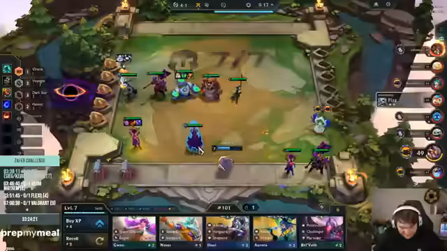 09:01:33Der Streamer und sein Team planen ihre TFT-Strategie, wobei der Streamer eine Zero Percent Arbeiter Policy verkündet - er wird keine Arbeiter kaufen. Sie experimentieren mit verschiedenen Builds wie Miepsis und planen für Level-6 und Level-10. Sie diskutieren ihre Rolle im Team, die sie als Support und Damage Dealer sehen, und wie sie zusammenwirken können, um stärker zu werden.