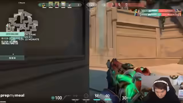 05:42:43Nach erfolgreichem Abschluss der Arena-Runde wechseln die Streamer zu Valorant, was bei den Streamern gemischte Gefühle auslöst. Sie gewinnen die Runde dank eines strategischen AP-Calls aus dem Chat, aber die allgemeine Stimmung ist ambivalent, da Valorant als äußerst frustrierend empfunden wird. Die Streamer diskutieren über Servereinstellungen, Pings und Teamstrategien, obwohl Valorant nicht ihre bevorzugte Spielart ist. Herausforderungen wie unerwartete Gegner und mangelnde Koordination belasten das Team.