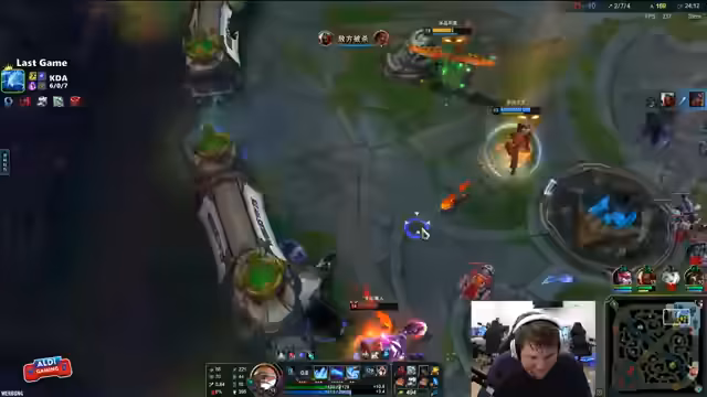 06:42:48Der Streamer vergleicht die Spielqualität auf dem chinesischen Server mit der in Europa West. Er stellt fest, dass die mechanischen Fähigkeiten der Spieler dort teilweise sogar höher sind als bei Grandmaster- oder Challenger-Spielern im Westen. Jedoch ist die allgemeine Spielqualität sehr volatil. Das Makro-Spiel wird hier weniger beachtet, stattdessen wird viel für Kills gechased und überladen. Die Spiele sind daher nicht immer qualitativ hochwertig, und der Streamer gibt zu, dass er deswegen in viele Fallen gelaufen ist.