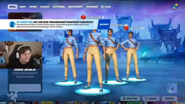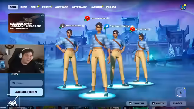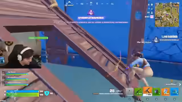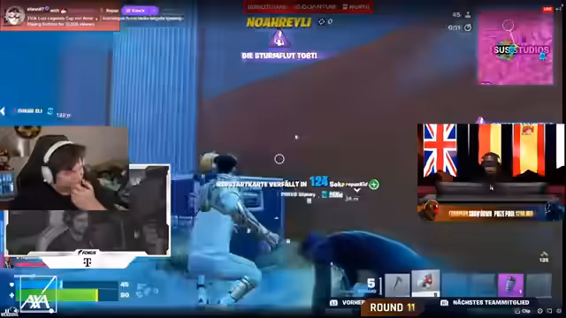 00:03:23Nach dem Warm-up startet der Streamer direkt in das Turnier. Die erste Runde verläuft chaotisch, als er versehentlich auf einen Mitspieler 'Wiko' schießt. Der Streamer bemerkt eine Ungerechtigkeit im Sichtsystem der Gegner, da deren Namen permanent sichtbar sind. Während des Spiels wird das Bauen von Bunkern als übermächtig eingestuft. Die Mannschaften sind bereits im Turnier, das über zwei Tage geht. Der Streamer prognostiziert, dass durch das Punktesystem viele Teams am zweiten Tag noch eine Chance haben, sich nach oben zu kämpfen, was das Format spannend macht.