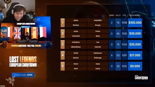 02:33:00Das Team erreicht erfolgreich die Top 10 und erzielt damit wertvolle Punkte für das Gesamtranking. Der Sieg wird als geisteskranke und spaßige Runde beschrieben, obwohl die Kill-Anzahl gering blieb. Der Streamer analysiert die Platzierungen im Gesamtranking und stellt fest, dass sie einen Platz verloren haben. Im Anschluss wird auf die Special-Runde eingegangen, in der spezielle Regeln gelten. Er äußert sich auch zu den Ungleichgewichten im Turnier und dem hohen Skill-Level der anderen professionellen und content-erfahrenen Teilnehmer.