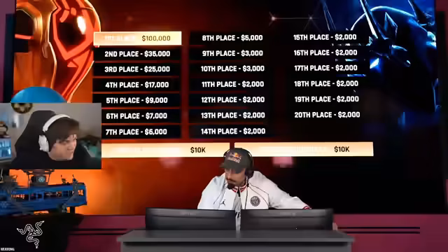 02:51:02Bei dem 250.000-Dollar-Turnier herrscht ein hohes Tempo und ein enormer Erfolgsdruck. Die Ausdauer der Spieler wird auf die Probe gestellt, da Runden schnell wechseln. Ein Pro-Spieler, der sich auf seine Chance gefreut hat, wird früh eliminiert, weil ihm keine Waffe zugewiesen wird. Dieser unberechenbare Zufall wird als bitter empfunden und die unternehmerische Frustration über die Turnierdynamik wird deutlich.