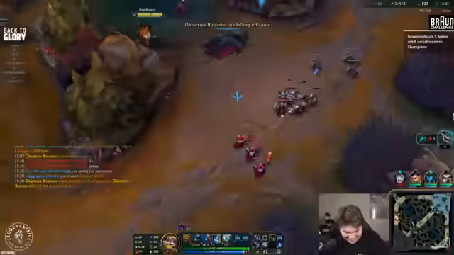 06:32:28Ivan wird für einen Bait gelobt. Es wird Herod gesichert und Shield-Bore als wichtig erachtet, gefolgt von Rallbreaker, um gegen die Ribbon-Find im 1v1 bestehen zu können. Call me Adolf hilft dem roten Baron Corki. Der Corki ist bereits gigantisch fett, und es wird festgestellt, dass man gegen ihn nicht 1v1 gewinnen kann. Ein Rückzug wird in Erwägung gezogen, um nicht zu riskieren. Ein Tier 1 wird mitgenommen, und die Raptoren werden contestet. Es wird überlegt, Atakan schnell zu spielen, da das Game cool ist. Der GA-Attacker macht nicht viel Schaden. Es wird überlegt, jetzt zu fighten, da ein Vorteil besteht. Ein sehr starkes Game von Sarko wird gelobt. Es wird in Erwägung gezogen, deep und dumm zu diven, da GA vorhanden ist. Ein Rückzug erfolgt etwas früh. Drake wird gefightet, und es wird festgestellt, dass der Atakan im Proplay oft das Game beendet, aber in Solo-Q selten. Der GA Atakan wird als potenziell Proplay-brechend angesehen. Das eigene Ion-Spiel wird als arsch schlecht bezeichnet. Bruiser-Champions werden als Achillesferse identifiziert. Das Problem des Teams ist, dass die Gegner krass skalieren mit Ivan, Corki und Hawaii. Die Kaiser spielt insane. Es wird festgestellt, dass man mit Yon komplett am griefen ist. Es wird überlegt, Corki unten zu schicken, um ihn vom Team fernzuhalten. Crash gone wird als huge bezeichnet. Es wird keine Bruiser lernen gewollt, da dies als verschwendete Lebenszeit angesehen wird. Ein Hardpush erfolgt weiter. Es wird festgestellt, dass es immer worth ist, gegen irgendjemand auf der Sideline zu sein, da das Team stärker ist. Der dritte Drake wird angestrebt, und Nisch ist vorhanden. Es wird festgestellt, dass es viele Meta-Champions gibt, die aktuell nicht gespielt werden können. Es wird überlegt, ob es irgendwann etwas bringen wird, diese zu lernen. Mit Hullbreaker, Shieldbow und drei Boots sollte man gegen die Riven fein sein. Ein Teamfight ist nach wie vor sehr schwierig. Es wird gespielt und langsam gepusht. Es wird hovert und der Rest vom Team geht top. Das ist Game, und es wird gewonnen. Es wurde gegen Vettio gespielt. Nicht aus Master abgestiegen, wichtig fürs Mantle. Das Team hat alle gut gespielt, und es gibt leider nur drei Honor. Die MMR ist leider nicht so gut. Es sollte etwas zur Beruhigung für zwischendurch gemacht werden. Der Client hat sich geschlossen, und es wird festgestellt, dass die Braun-Challenge fertig ist. Die Braun-Challenge wurde offiziell bestanden, und es gibt Applaus. Als erstes dürfen im Namen von Braun 100 Subs gegiftet werden.