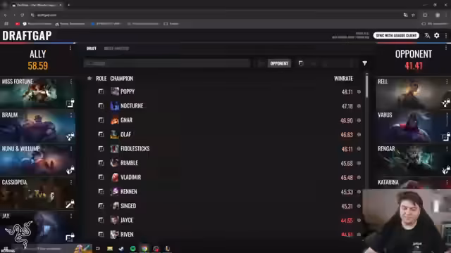 05:31:56Der Streamer interagiert mit der Community über sein honorables Verhalten im Spiel und seine minimalistische Chat-Kultur. Er stellt ein angebliches AI-Drafting-Tool vor, das ihm bei der Champion-Auswahl helfen soll. Nach anfänglicher Skepsis entscheidet er sich, es zu testen und koordiniert mit der Community die Picks. Das Tool empfielet mathematical gesehen einen hochgradig erfolgreichen Draft mit 58% Winrate, was er als bemerkenswert wertet und durch das Spiel bestätigt sieht, auch wenn er sich durch einen Pick-Fehler später selbst als fehlerhaft bezeichnet.