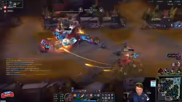 05:33:55Der Stream ist von intensiven League of Legends-Kämpfen geprägt. Kommentiert wird ein andauernder Kampf um die Map-Kontrolle und Objekte. Es geht strategisch um das Halten von Lanes, das Fokussieren von gegnerischen Champions wie einen Nautilus und das Timing von Ultimate-Fähigkeiten. Der Kommentar betont die Dringlichkeit von Positionierung und den Kampf um den 'Herz'-Buff, während das Team versucht, einen Vorteil zu erzielen und Gegner auf Top zu reduzieren. Die Stimmung ist aufgeregt und fokussiert auf den taktischen Aspekt des Spiels.