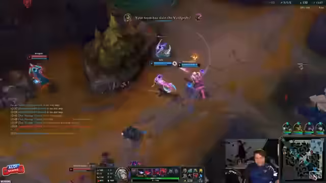 04:02:12Nach einem Sieg in einem teamfight entscheidet sich das Team, den Nashor zu nehmen, um einen entscheidenden Vorteil zu sichern. Der Streamer, der mit Ivern spielt, ist dabei zentraler Initiator und Unterstützer. Trotz eines schwierigen Kampfes, in dem der Streamer getötet wird, gelingt es dem Team, den Nashor zu erobern und das Spiel anschließend zu beenden.