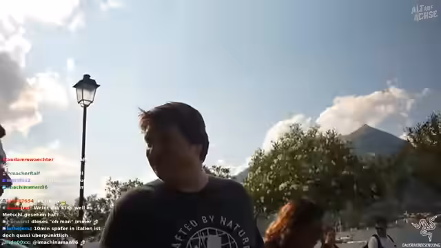 05:14:58Während ihres Spaziergangs durch Bellagio interagieren die Streamer mit der einheimischen Bevölkerung. Sie bemerken, dass die Menschen sichtlich erfreut sind, wenn sie angesprochen werden. Ein besonders bemerkenswertes Erlebnis ist ein begegnung mit einem Autofahrer, der sie fast anfährt. Diese Begegnungen werden humoristisch verarbeitet und als Teil des Erlebnisses 'Expedition ins Unbekannte' gesehen.