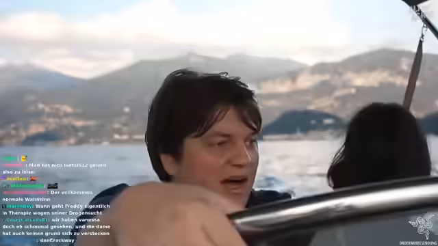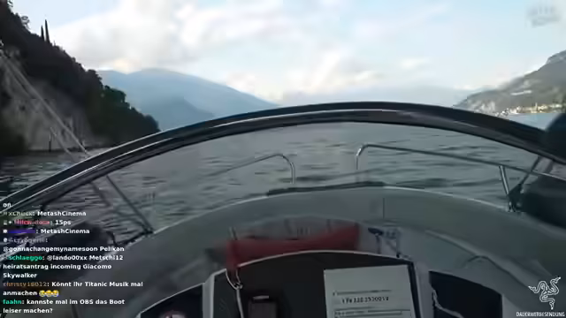 07:44:18Nach der beschwerlichen Anfahrt erreicht das Boot schließlich den berühmten Drehort der Villa Balbinello, der im Star Wars Film Naboo darstellt. Bei der Ankunft ist die Begeisterung im Chat groß, und die Streamer planen, kurz zu stoppen, um das Gelände und die Aussicht zu genießen. Die Atmosphäre ist geprägt von Euphorie und einer tieferen Einbindung in das Erlebnis, als die Gruppe das Ufer erkundet.
