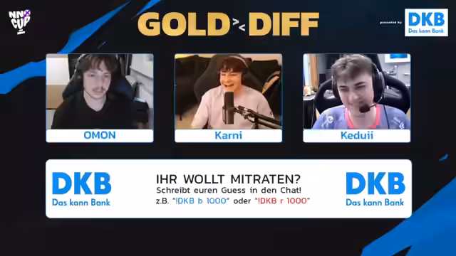 06:33:18Nach dem Interview beginnt ein interaktives Segment, das DKB Gold-Duell. Der Kommentator und die Spieler bewerten drei Screenshots der Serie und versuchen, den Goldunterschied zu schätzen. Auch der Chat kann an dem Wettbewerb teilnehmen und für korrekte Tipps Skin Ops gewinnen. Der Wettbewerb wird humorvoll und mit interaktiven Elementen begleitet, wie Provokationen wie 'Bist du delusional?' bei einer extrem hohen Schätzung. Dieses Segment dient als lockere Überbrückung und direkte Interaktion mit der Community.