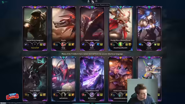 00:02:05Für das erste Spiel auf dem Master-Account wird ein Champion gewählt, mit dem man sich wohl fühlt, wahrscheinlich ein klassischer Crit-Jarvan IV. Der Streamer möchte den Champion im Allgemeinen mehr üben, da er in der aktuellen Meta an Wirkung verliert. Es wird eine kritische Diskussion über Warwick als Top-Laner geführt, dessen einzige Daseinsberechtigung eine starke Early Lane ist, da sein Scaling schlecht ist und er nur von einem Vorteil leben kann.
