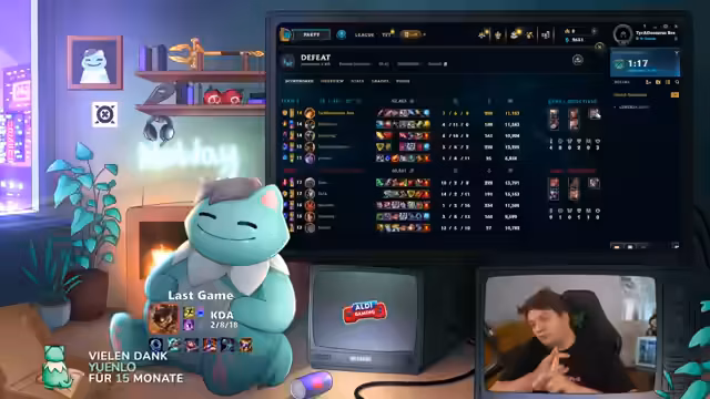 05:18:21Der Streamer stellt fest, dass ein gegnerischer Spieler AFK war und nicht disconnectet, da das Spiel dies schneller anzeigen würde. Er beschließt, den Spieler nach dem Spiel zu reporten. Parallel dazu begrüßt er neue Supporter im Chat, wie Sabi Lee Jones und Mike Lutzkowski, und erwähnt seine akute Notwendigkeit, ein weiteres Spiel zu gewinnen, um den Ausgleich zu schaffen. Er bittet kurz um eine Toilettenpause, während das Spiel weitergeht.