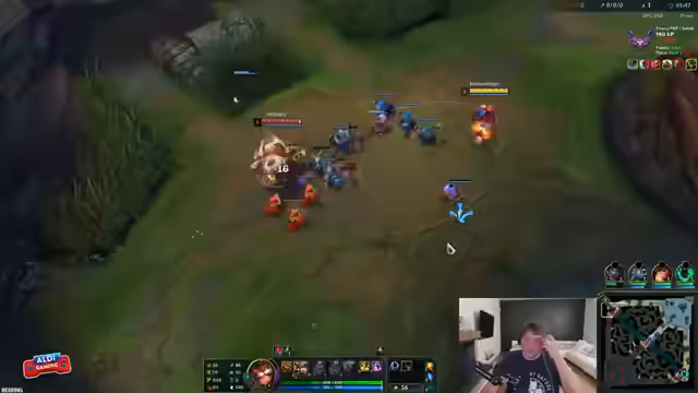 00:08:37Nach einer technischen Diskussion beginnt das erste League of Legends Spiel. Der Streamer spielt Gragas auf der Top-Lane und diskutiert das Early-Game Problem dieses Champions. Er stellt fest, dass er gegen einen starken Gegner spielt und mit Teamkommunikationsschwierigkeiten zu kämpfen hat. Sein Team verliert schließlich das Spiel aufgrund schlechter Entscheidungen und nachlassender Performance, was den Streamer frustriert.