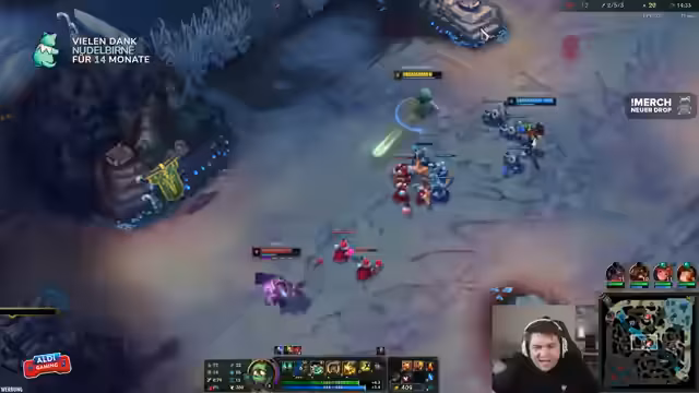 01:25:2425 Prozent der Leute, die hier zuschauen, spielen genauso. Das kann nicht sein, weil 50 Prozent meiner Zuschauer spielen kein League of Legends mehr. 50 Prozent. kein Ranked. Kein Ranked. 50 Prozent. mittlerweile sogar mehr. Wir können wieder eine Umfrage machen. Das würde mich voll interessieren. Wollen wir wieder eine Umfrage machen. mittlerweile sind es mehr als 50 Prozent sogar. Hier wollen wir Presence Full Scaling. Das ist kein gutes Match. Da werden wir sehr viel proxieren müssen. Vielleicht mit Revenus. Lass uns nach dem Game eine Umfrage machen. wir machen, wir machen praktisch Ranked, FFT-only, Aram und Fun-Modis-only gar nicht mehr und. Wir machen das nach dem Game, Leute. Jetzt erst eine Runde Nocturne. Beelbuff ist gerade noch unten weg. Was? Ich wollte Proxien. Wie zur Hölle finden die mich Level 1? Ich mach's direkt Ghost. Wir müssen die Wave hier reindrücken, wenn wir dürfen. Das ist, dass die Bellwave uns jetzt nochmal abkontesten geht. wir nehmen jetzt hier über die Wave. Leider, die kennen mir den Wave, ne? Ich hab's awkward gemacht, aber. Wir müssen gleich nochmal resetten. Wir können Executen gehen.