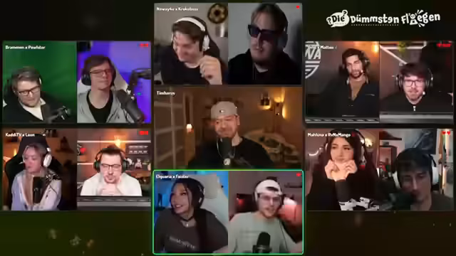 03:28:58Der Stream nähert sich dem Ende und die letzten verbleibenden Teams kämpfen um den Sieg. Die Fragen werden immer spezieller und erfordern tiefes Wissen. Aquaria und Feister werden gefragt, wie viel ein Liter Wasser wiegt, und antworten korrekt. Anschließend müssen No Way und Kroko eine Frage zu Fabeln beantworten. Die Spannung steigt, da die Anzahl der verbleibenden Teams und Herzen immer kleiner wird. Tim gibt einen Ausblick auf mögliche zukünftige Events und zeigt sich beeindruckt vom Engagement der Teilnehmer.