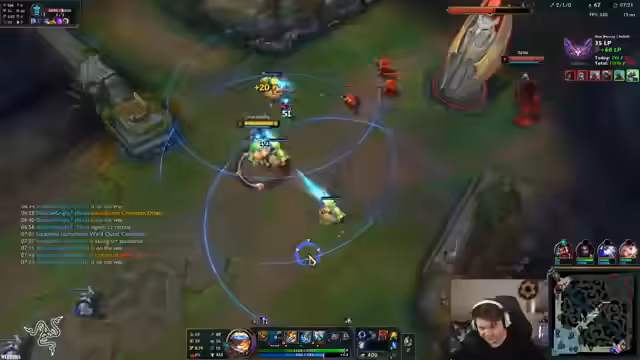00:07:39Der Streamer gibt bekannt, dass sein Jungle-Projekt, das das Ziel hatte, den Challenger-Rang zu erreichen, beendet ist. Er sei zwar auf Grandmaster Rang 400 gekommen, habe aber eine massive Verlustserie erlitten und das Projekt als zu schwer aufgegeben. Er diskutiert die aktuellen Schwierigkeiten, den Challenger-Rang zu erreichen, da die benötigte Winrate gegen die besten Spieler Europas extrem hoch sei und die Erfahrungspunkte (LP-Gains) unberechenbar seien.