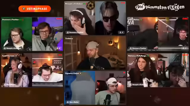 01:40:32Nach einem beendeten Quizabschnitt herrscht eine veränderte Stimmung im Stream. Die Teilnehmer äußern Unzufriedenheit mit dem Quizformat, insbesondere mit dem Voting-Mechanismus 'Der Dümmste fliegt', der als unfair und zu hart kritisiert wird. Es kommt zu Diskussionen über vermeintlich falsche Fragen und Antworten, was zu einer angespannten Atmosphäre führt. Der Streamer versucht, die Spannung aufrechtzuerhalten und leitet in die nächste Runde über, während die verbleibenden Teams versuchen, die allianzbasierten Strategien zu analysieren und für sich zu nutzen.