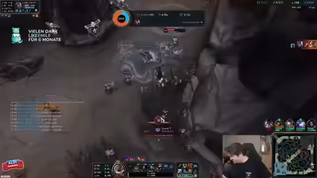 03:32:01Ein League of Legends-Spiel beginnt, bei dem der Streamer Lee Sin im Jungle spielt. Er analysiert den gegnerischen Jungle und spekuliert über die möglichen Startpositionen des Gegners. Es werden strategische Entscheidungen getroffen, wie der Zeitpunkt zum Drake spawnen und die Bedeutung von Camps wie den Raptoren. Das gestaltet sich als schwieriges Spiel, bei dem die Botlane im Nachteil ist, während der Streamer selbst im Jungle einen Vorteil hat. Die Teams kämpfen um Objektive wie den Drake und den Herald, was zu intensiven Teamfights führt, die aufgrund von fehlerhaften Flashes und fehlenden Ultimates oft schlecht ausgehen.