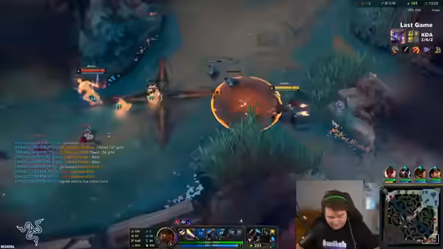06:00:05Während eines Spiels beobachtet der Streamer, dass sein Gegner, ein Shaco, sich in ein Duell mit ihm begibt. Der Gegner respawnt sofort und versucht, wieder ins Mittelfeld zu gelangen. Der Streamer wendet eine Taktik an, bei der er seinen Ability E aktiviert, um den kleinen Schatten des Shaco am Boden zu erkennen und so dessen Bewegungen vorhersagen zu können. Er beschreibt dies als eine effektive Methode, um gegen solche Gegner vorzugehen.