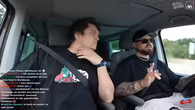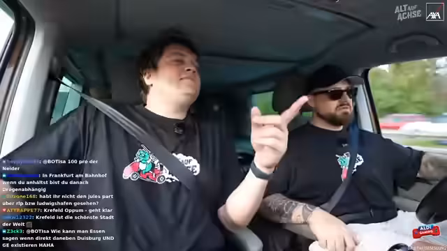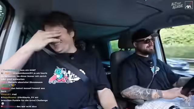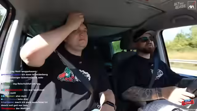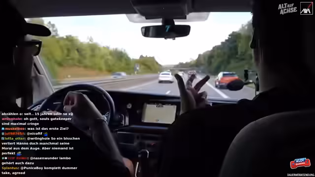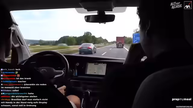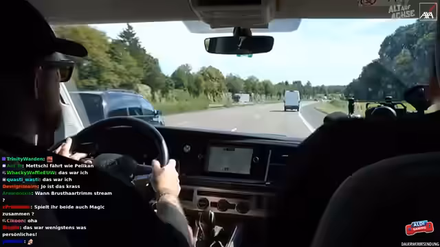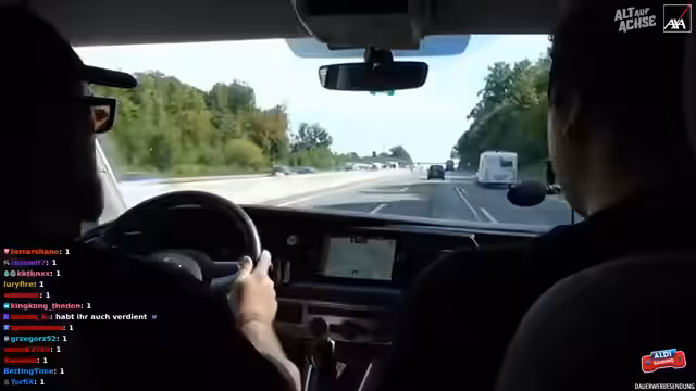03:17:36Während der Fahrt kam es zu einer brenzligen Situation, als ein anderes Fahrzeug ohne zu blinken die Spur wechselte und den Streamer fast rammte. Die prompte Reaktion von Freddy, der den Fahrer warnte, verhinderte einen möglichen Unfall. Die Situation wurde als sehr knapp und beängstigend beschrieben. Im Nachgang wurde der Vorfall in der Kamera überprüft und festgestellt, dass der andere Fahrer tatsächlich ohne Vorwarnung die Spur gewechselt hatte. Es wurde kurzzeitig die Geschwindigkeit reduziert, um die Situation zu verarbeiten. Der Fahrer des anderen Fahrzeugs, vermutlich älteren Semesters, beschwerte sich noch gestikulierend über die Situation, was für zusätzliche Verwunderung sorgte. Es wurde kurz überlegt, ob man den Vorfall anzeigen sollte, aber man entschied sich dagegen.