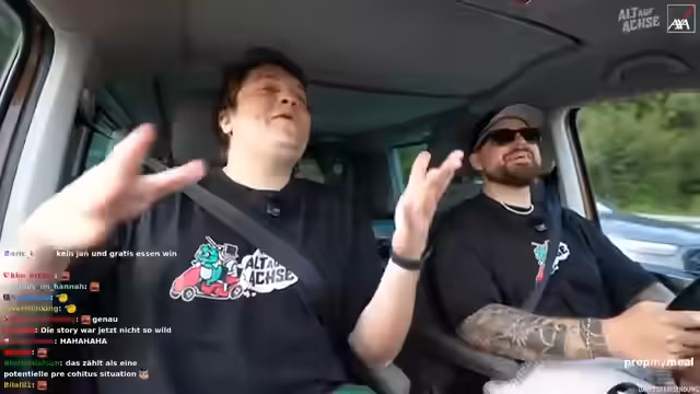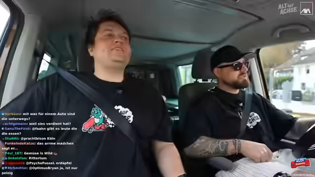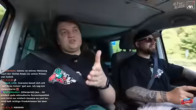 03:17:36Während der Fahrt ereignet sich ein kritischer Moment: Ein anderes Fahrzeug wechselt ohne Blinken die Spur und verursacht einen beinahe Unfall. Streamer und sein Kollege reagieren blitzschnell und können eine Kollision vermeiden. Die Situation als sehr knapp und gefährlich beschrieben. Dies führt zu einer Diskussion über die Sicherheit im Straßenverkehr, insbesondere bei älteren Fahrern und die Bedeutung von Achtsamkeit.