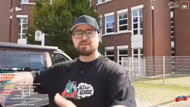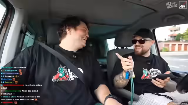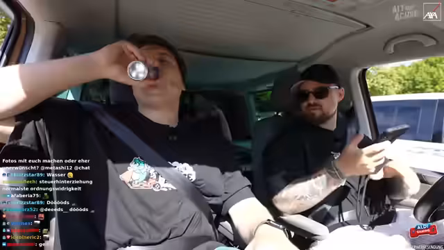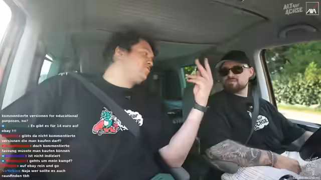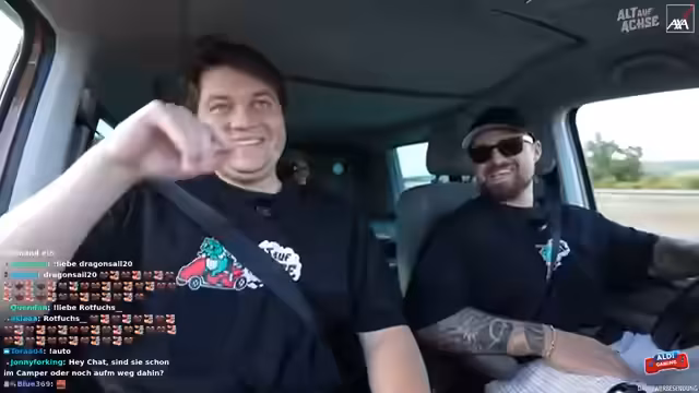 02:16:51Es wird ein verlorenes Mikrofon gefunden und die Fahrt kann beginnen. Es wird über frühere Streiche und Missgeschicke gesprochen, wie zum Beispiel eine Irrfahrt in den Norden statt in den Süden. Ein Allgemeinwissen-Quiz mit Flaggen wird für die Fahrt vorbereitet. Es wird über die Hauptstadt von Spanien diskutiert. Es wird umgeschaltet und die Fahrt beginnt. Es wird über die Angst gesprochen, mit den anderen alleine zu sein. Der Stream wird auf dem Handy eingerichtet, um den Chat zu verfolgen. Es werden 15.000 Zuschauer erreicht. Es wird ein Foto mit der Einblick-Kamera gemacht. Es wird über den Cutter und dessen Bezahlung gesprochen. Es wird über die Soundqualität diskutiert und verschiedene Kameras ausprobiert. Es wird über Steuerhinterziehung gesprochen. Es wird über Red Bull und Wasser diskutiert. Es wird über die Route nach Heidelberg diskutiert und das Navigationssystem des Autos genutzt. Es wird über einen möglichen Phoebe-Vorfall gesprochen und wie man darauf reagieren würde. Es wird über die Adresse in Heidelberg diskutiert und verschiedene Optionen ausprobiert. Es wird ein Wasser aus dem Aldi getrunken.