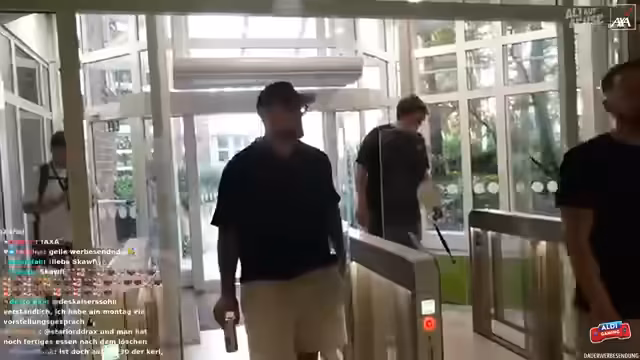 07:35:54Es wird überlegt, ob man in der Mensa filmen darf und ob man eine Drehgenehmigung benötigt. Ein Zuschauer wird als 'Mensa-Fan' dargestellt, der die Mensa immer wieder empfiehlt. Die Gruppe diskutiert, ob die Mensa ein 'Kult' unter den Studenten ist. Es wird kurz die Freundin von Frederik erwähnt und dass sie heute nicht dabei ist. Die Gruppe überlegt, ob sie etwas über die Stadt erzählen soll, aber es gibt gerade nichts Interessantes zu sehen. Es wird spekuliert, dass Paul von Gnoway entführt wurde. Es wird überlegt, ob Freddy sich einfach hingesetzt hat und isst oder ob er einen Uni-PC sucht, um Leak zu zocken und zu streamen. Die Gruppe wartet auf den Kameramann Jan und Freddy. Es wird beschlossen, etwas zu essen zu holen, den Philosophenweg zu erklimmen und sich das Feuerwerk anzusehen. Ein Zuschauer wird getroffen, der promovierter Jurist ist. Es wird diskutiert, ob man in der Mensa filmen darf. Es wird beschlossen, den Philosophenweg zu nehmen und sich etwas zum Mitnehmen zu besorgen.